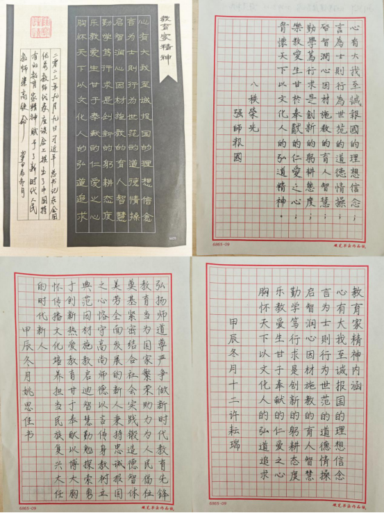 本次“三笔字”大赛不仅进一步激发师范生从教的积极性和创造性,激励广大学子们以更加扎实的专业素养、更加熟练的教学技能更好地肩负起教书育人的重要使命。未来,学院将以此活动为契机,继续注重强化学生基本技能实践教学,提高学院人才培养质量,着力培养卓越的新时代教师。