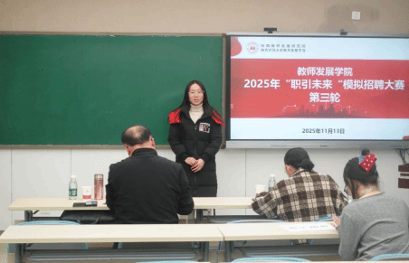 于2025年11月13日晚7点在雁塔校区教学一楼举办“职引未来”模拟招聘大赛第三轮比赛。