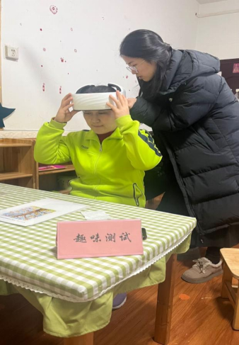 学院特殊教育、应用心理学专业硕士研究生代表深入幼儿班级了解学前融合教育开展情况,为幼儿教师进行心理测评。心理学专业研究生演示心理调适系统、心脑调谐仪、便携心理自助系统和VR设备等心理学仪器,并组织36名幼儿园教职工开展趣味心理测验活动和体验心理仪器。