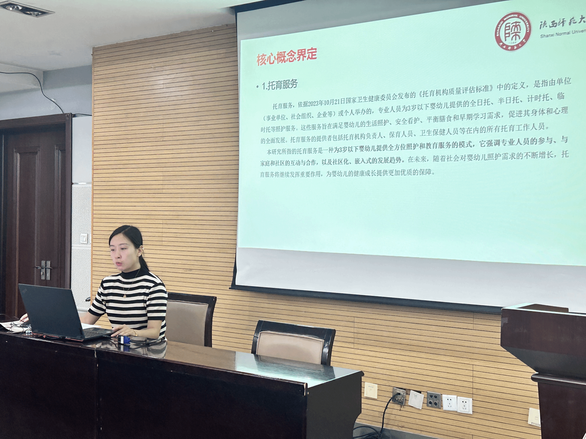 会上,刘利、李静、李媛、吴日晖四位同学依次对《数字化驱动县域普惠性幼儿园优质均衡发展的研究与实践》《幼儿园家园共育新模式实践研究》《基于县域特点的社区幼儿园嵌入托育服务的现状及优化路径研究--以西安市长安区为例》《教育家精神引领定向师范生教学实践能力提升策略研究》选题进行开题汇报。内容涵盖选题背景与意义、核心概念界定、研究内容与问题、研究思路与方法、预期成果即及规划等关键环节,选题既关注教育理论的深入探讨,也兼顾现实问题的实践回应,充分体现了研究者对教育热点问题的敏锐洞察力与多维视角。