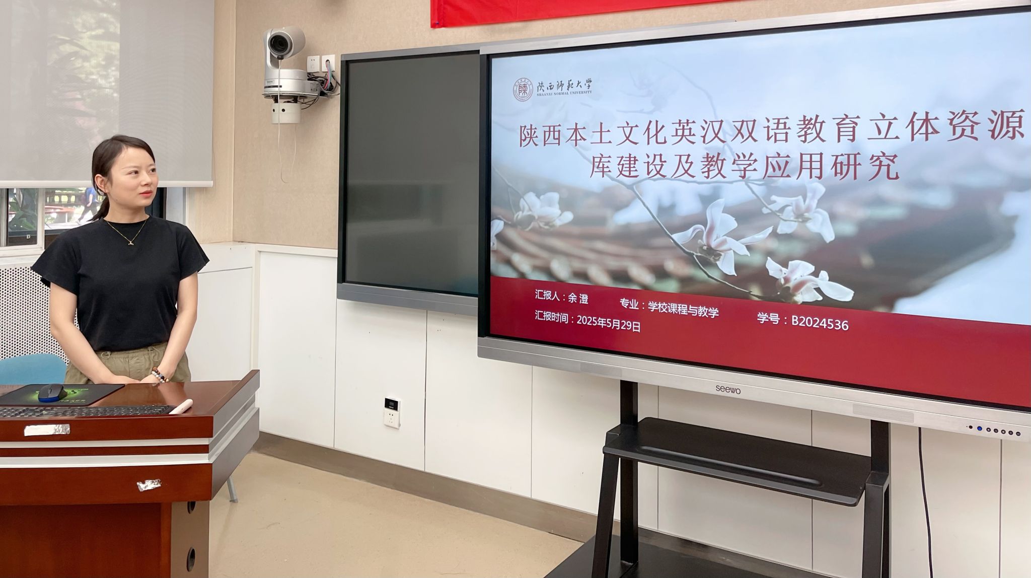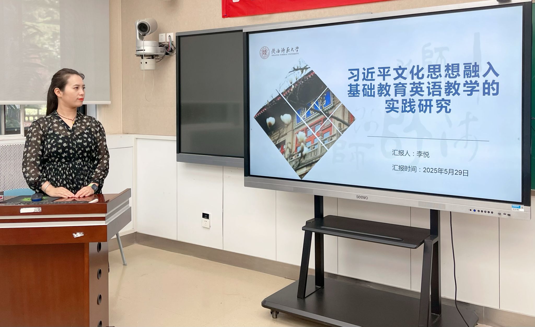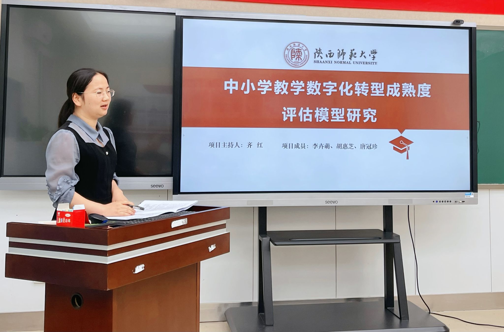 会上,余澄、李悦、齐红、李里程四位项目负责人依次对《陕西本土文化英汉双语教育立体资源库建设及教学应用研究》《习近平文化思想融入基础教育英语教学的实践研究》《基础教育学校教学数字化转型水平测评指标体系构建与应用》《生成式人工智能赋能师范生智能教育素养与胜任力培育》选题进行开题汇报。内容涵盖选题背景与意义、核心概念界定、研究内容与问题、研究思路与方法、预期成果即及规划等关键环节,既关注教育理论的深入探讨,也兼顾现实问题的实践回应。