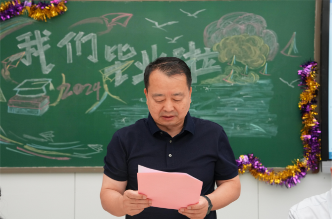 李森代表学院向圆满完成学业的2024届毕业生表示衷心祝贺,并从树立远大理想、坚持终身学习、敢于担当作为三个方面勉励同学们勇于担责、奋勇向前,把人生理想融入中华民族复兴的伟大事业中,在艰苦奋斗中砥砺意志、增长才干、绽放青春光彩。